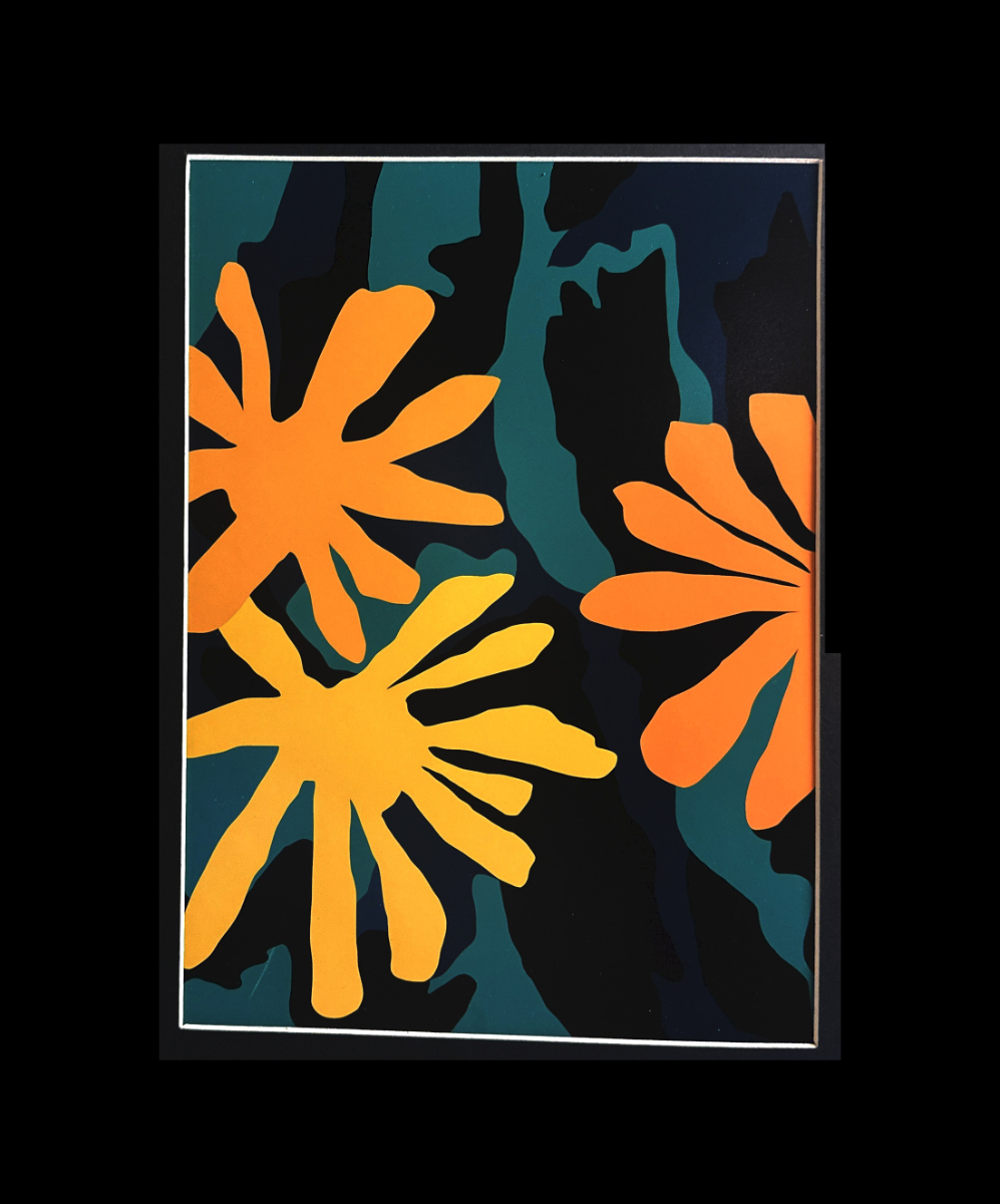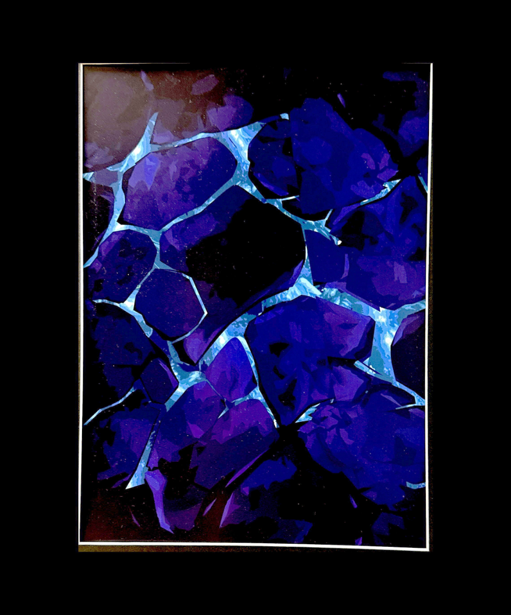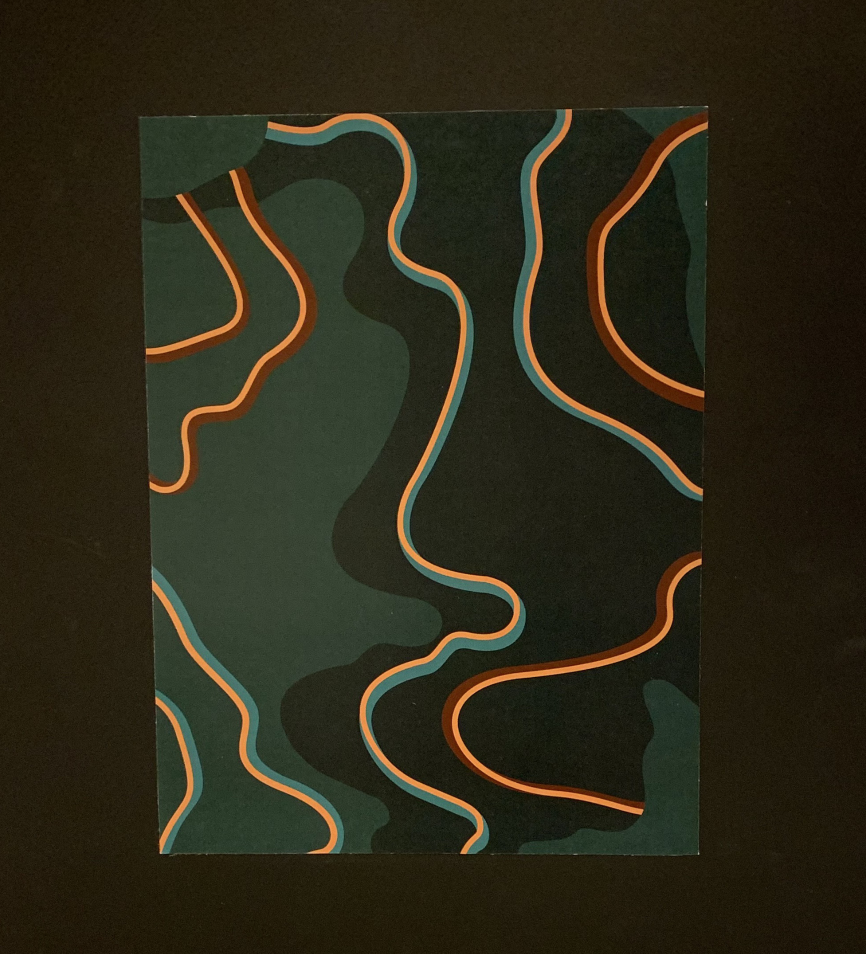 “Roots of Change” – depicts a world growing too hot for nature to sustain. The flowers melting under the intense heat symbolize the fragility of life in a warming climate and how fast action is needed. Despite speaking about warm temperatures, I choose a cooler palette to suggest hope of improvement and change in the future. I envision the work to live at a coffee shop, sit-down restaurants, library, a modern home, or even a school study room. The work is suited for more quiet, relaxing places.