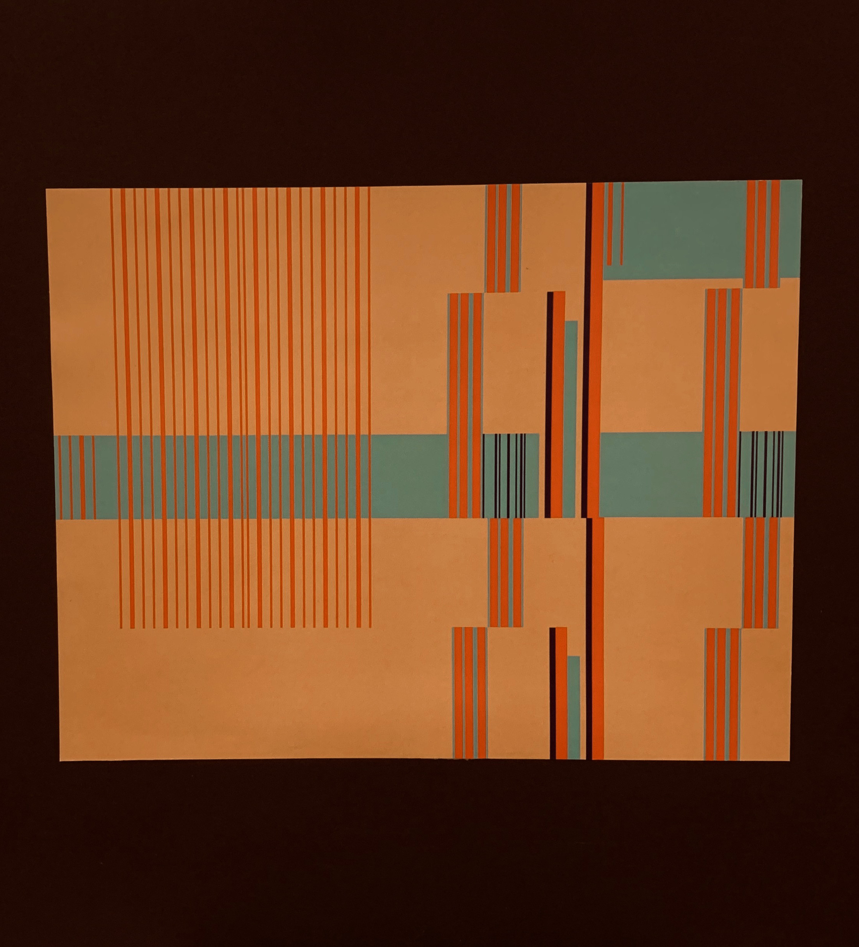 After researching artists from the time period, artist, nun and educator Corita Kent, stood out as the perfect source of inspiration. Corita Kent’s most influential work existed in the 1960s and 1970s. Her artwork reflected the time period, using language to express concerns about poverty and war, advocating for civil rights, peace, and social justice. Her bold silk screen printed pieces drew inspiration from modern day pop culture and consumerism, similar to Andy Warhol. In contrast to Warhol, Kent used consumerism language to spread messages of positivity and hope. She looked for joy in everyday things. I took inspiration from Kent’s bold colors, imperfect shapes, and the ability to overlap colors to create depth. This rug fits a modern interior design aesthetic that would work well in a space of warm tones. I can see this rug in a space with mid- century modern furniture that balances neutrals with pops of color.