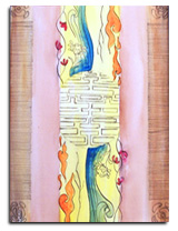 “Soundless Sound”. The Soundless Sound is the sound of our world. It is inspired by nature and dreams. It represents calmness, beauty, and magic behind a turbulent world. Using Persian calligraphy for the expression of discipline and conveying the emotions with the help of colors show the essence of this world which is harmony and peace in the middle of disorder. Circular forms in contrast with harsh forms are the sign of contrast and at the same time they are the sign of connection and uniformity. Bright colors are the sign of hope and enlightenment. Combination of forms and colors and using calligraphy and letters is the best way for representing meaning, emotion, and movement. Soundless sound challenges the viewers to find beauty and hope in the middle of chaos and disorder. This asks the viewer to think and hear the sound behind reality.