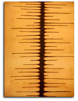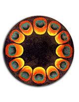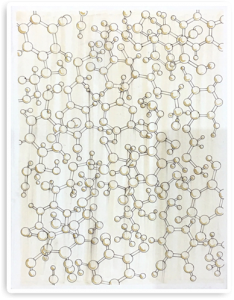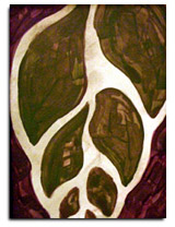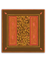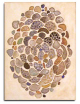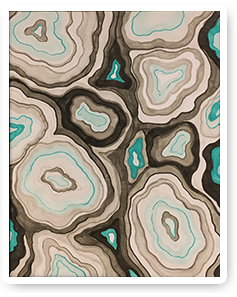 A pinecone can be recognized quickly from a distance, yet one must look closely in order to differentiate a single cone from others. They offer strong lines and textures that vary from one another. They are simultaneously rough and smooth. The shapes are simple, curvy, and natural. I chose a black background, representing night-time, where the seed is both vulnerable and protected. Strong, yet softer tonal colors of brown, tan, beige and cream indicate warmth and offer an inviting aura. “The Pinecone” is a charming, versatile piece in which I vision laying in a cozy room, such as foyer or bedroom. Although its organic woodsy feel would fit well in a den, library, lodge, or a room with a cobblestone fireplace.