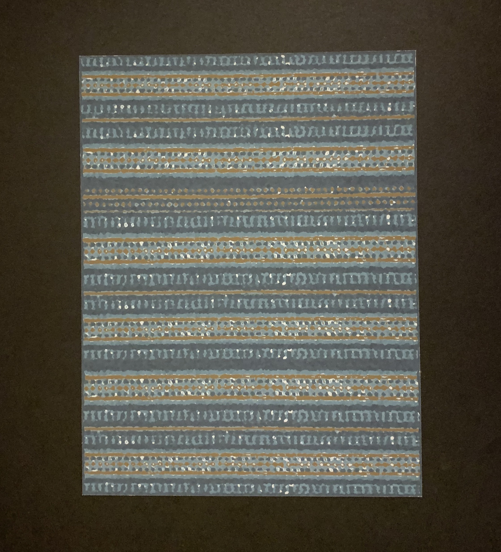 “A drop of water is worth more than a sack of gold to a thirsty man”-Unknown. Water is a necessity we all take for granted every day. Everyone was reminded of the importance of clean water in 2014 when we found out the residents of Flint, Michigan are consuming, cooking, and bathing in water contaminated with lead. My rug design is an abstract reflection of how the Flint water crisis caused detrimental damage to the residents of Flint, Michigan. Still continues to every day, for no other reason other than greed and negligence. The design has a base of beautiful blue clean water. The rust orange color on the rug represents the color of Flint’s water. They form into ripple-like motifs to symbolize the impact of a few covetous city officials had on the entire community of Flint. When designing the rug I was keeping a residential environment in mind.