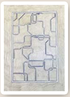 I was inspired by Dada artist Sophie Taeuber-Arp. Though some of her work involves geometric shapes and grids, I was drawn to the pieces she made that showed a human side, with imperfect lines and illogical placement of forms. With this in mind, I took a checkerboard pattern and abstracted it, drawing not so much with reason, but with feeling, until the positive and negative space felt balanced. Growing up, my mother taught me to look at abstract shapes and think of things it resembled. Still to this day, I am drawn to abstractness, where meaning is endless and the energy of the piece is really what moves you. This rug would be used in an environment that was neutral and in need of additional energy. The soft geometric form would work well with a modern space, with modern pieces.