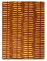 This rug design is inspired by the African tradition of mudcloth dying. I was fascinated with both the mudcloth dying process, as well as the beautiful natural colors and patterns achieved by using this technique. This fabric dying tradition comes from northern Africa and is a tradition that dates back to the 12th century. The process involves weaving together thin strips of plain fabric and dying them in a bath of leaves and branches. After the first layer of fabric dye dries, beautiful patterns are painted on the cloth with mud. After the mud dries it changes color from dark brown, black or gray depending on the type of mud used. The designs painted on the cloth are used to tell stories, some relating to family traditions and others having more generalized meanings. In my rug design the main shapes I use are triangles. Triangles are important to