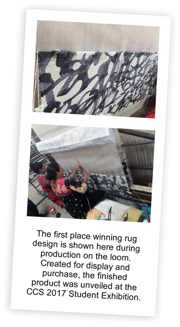 For over 25 years, Hagopian has fostered educational excellence in design with their Student Rug Design Competition, offering scholarships and donations to local colleges.CCS staff along with 2016 Judges Jana Keyes of JJK Designs and Dayna Flory of Dayna Flory Interiors, joined hosts Suzanne Hagopian and Angela Hagopian Snow at the Birmingham showroom to determine the winners of the 27th Annual Student Rug Design Competition. Enthusiasm for this treasured project was evident in the lively deliberations as each student entry was carefully reviewed. It was obvious that the 2016 theme of “immigration” was embraced by the students as their inspiring rationales were read.