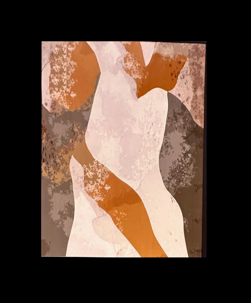 “Any Body?” The inspiration for this piece came from redefining the conversation we are having about the human form. What is the female body vs the male body vs a body that is no longer defined by those terms. Where do the curves belong and who do they belong to? Who gets to be called a woman or a man and who defines what that looks like? How do I define it? The natural pastel color range helps guide how the conversation is shaping and being shaped by other races, cultures, and communities? As soon as we seen to come about an answer it slips delicately away, peering out and hiding, creating a maze of non-sequential patterns that we playfully continue to discover.