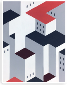 The inspiration behind this rug derives from the Neo-Expressionism era of the 1970s – 1980s with a retro-now execution. Neo- Expressionism can be identified in art by usage of bold and saturated colors, paired with dramatic and distorted shapes to curate an emotional response to tell a particular story. Pulling inspiration from a notable artist of this period, Philip Guston (1913- 1980) and Georg Baselitz (1938 present day); their artwork consists of primarily abstract forms accompanied by a bold color palette. I chose to maintain the original narrative of the Neo- Expressionism movement, a retaliation against minimalistic artwork while incorporating modern elements of modernism. My idealized placement of this rug is to be displayed in a gathering setting; a great room; a home library, and a living room. The reasoning behind this is that I envision this rug being a conversation starter, a piece to be viewed with interpretation, pondered and analyzed.