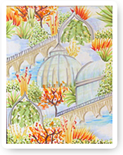 Casey used the iconic architecture, Belle Isle’s history and the impressions of light and color encountered in the Anna Scripps Whitcomb Conservatory